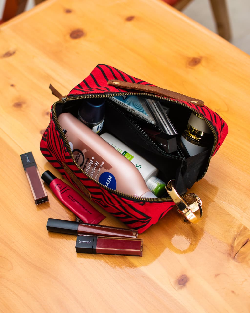 A stylish and practical washbag featuring a unique patterned canvas and classic tan leather details. Complete with a comfortable tan leather carrying handle and a leather branded tag, this bag is perfect for organizing your toiletries and essentials on the go. Durable and distinctive, it blends utility with flair.